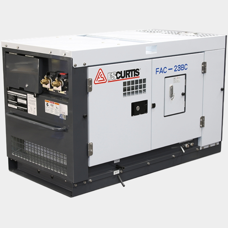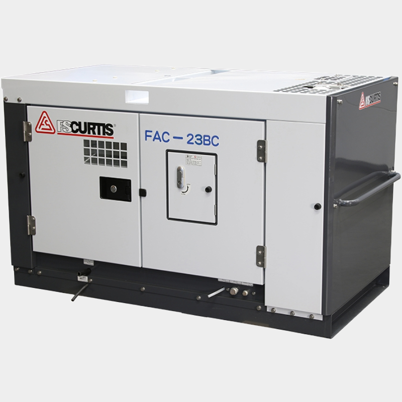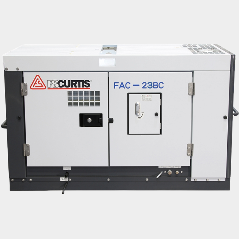 FS-Curtis FAC Series box type, portable diesel air compressors are designed for mounting in confined spaces such as on service trucks. They are also ideal for stationary applications. Access is only required to one side for routine maintenance. The all-steel cabinets are lockable, silenced and weatherproof. Made in Japan.